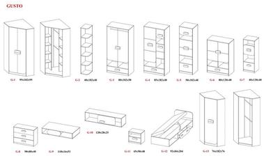 GUSTO - je moderní modulová sestava, která je vyrobena z kvalitního lamina 16 mm s ABS páskou, designové úchytky. Nábytek je dostupný ve dvou barevných provedeních dub Cremona / fiolet, nebo dub Nova / bílá. Nábytek je vhodný pro děti i studenty.