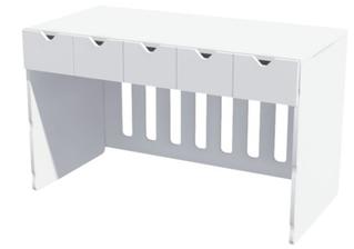 Postýlka 60x120 cm lze jednoduše po překlopení přestavět na psací stůl, s možností dopoupení šuplíku do psacího stolku. Když dítě vyroste z postýlky, tak ji přesto ještě užije...