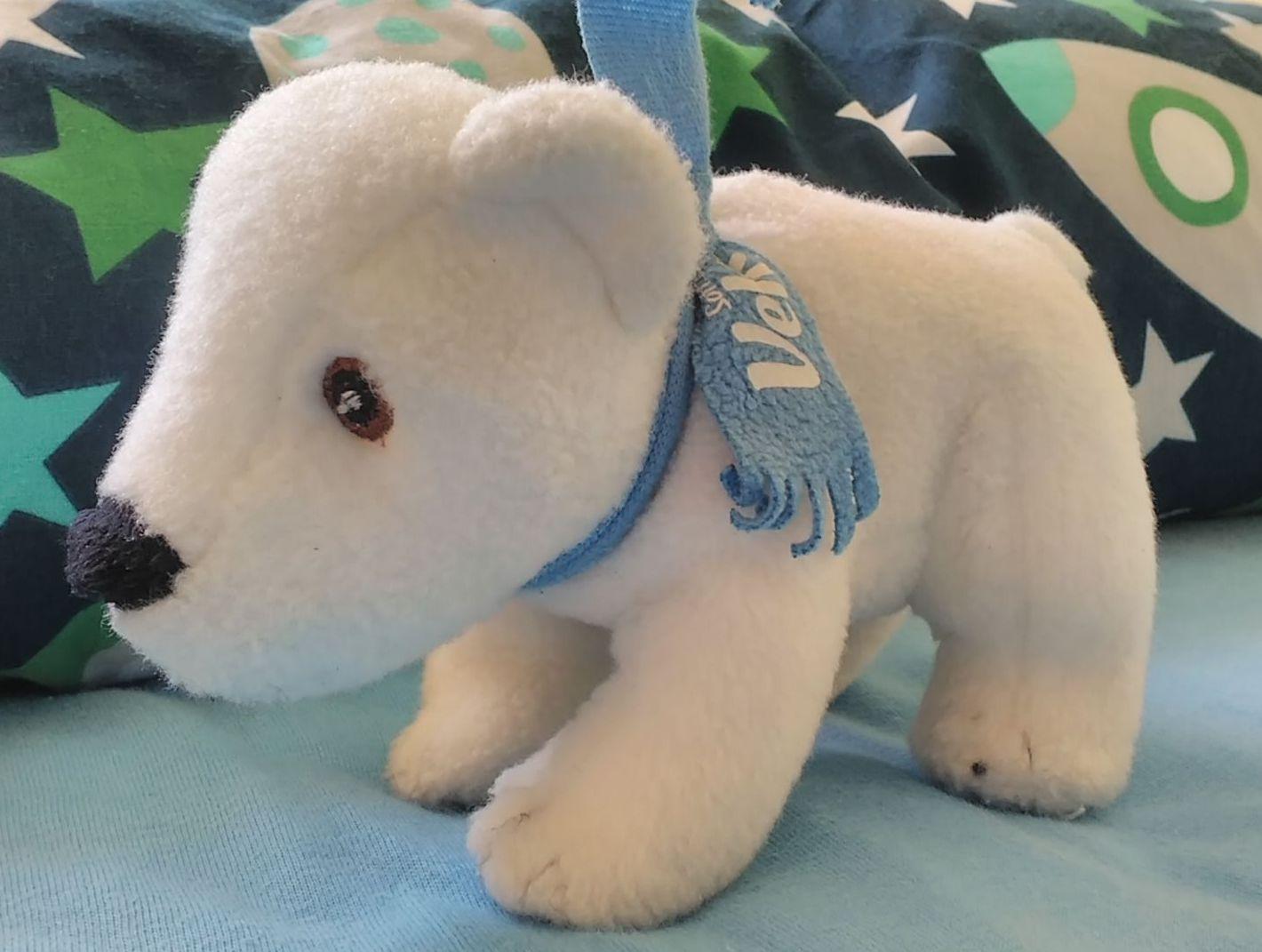 Jo a máme doma i medvídka Veltie, který chodí s prckem někdy do školky, aby si to tam taky užil a z bílého byl šedivý. 🙂
