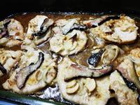 Vepř. plátky lehce naklepat, osolit, opepřit, jednu stranu potřít hořčicí, obalit v mouce a osmažit. Pekáč vymazat olejem a rozložit nakrájenou cibuli na půl měsíčky. Přidat osmažené maso, nakrájený na plátky česnek, na plátky anglii, cibuli, pokapat worchestrem a sojovkou a podlít vodou a dát péct