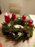 v plánu je věnec s jednou svíčkou, al ještě jaksi není úplně dokončen....:D roští s nějakým zeleným a ozdobama dřevěnejma, pomerančovejma, skořicema.. co se tam vejde🙂
