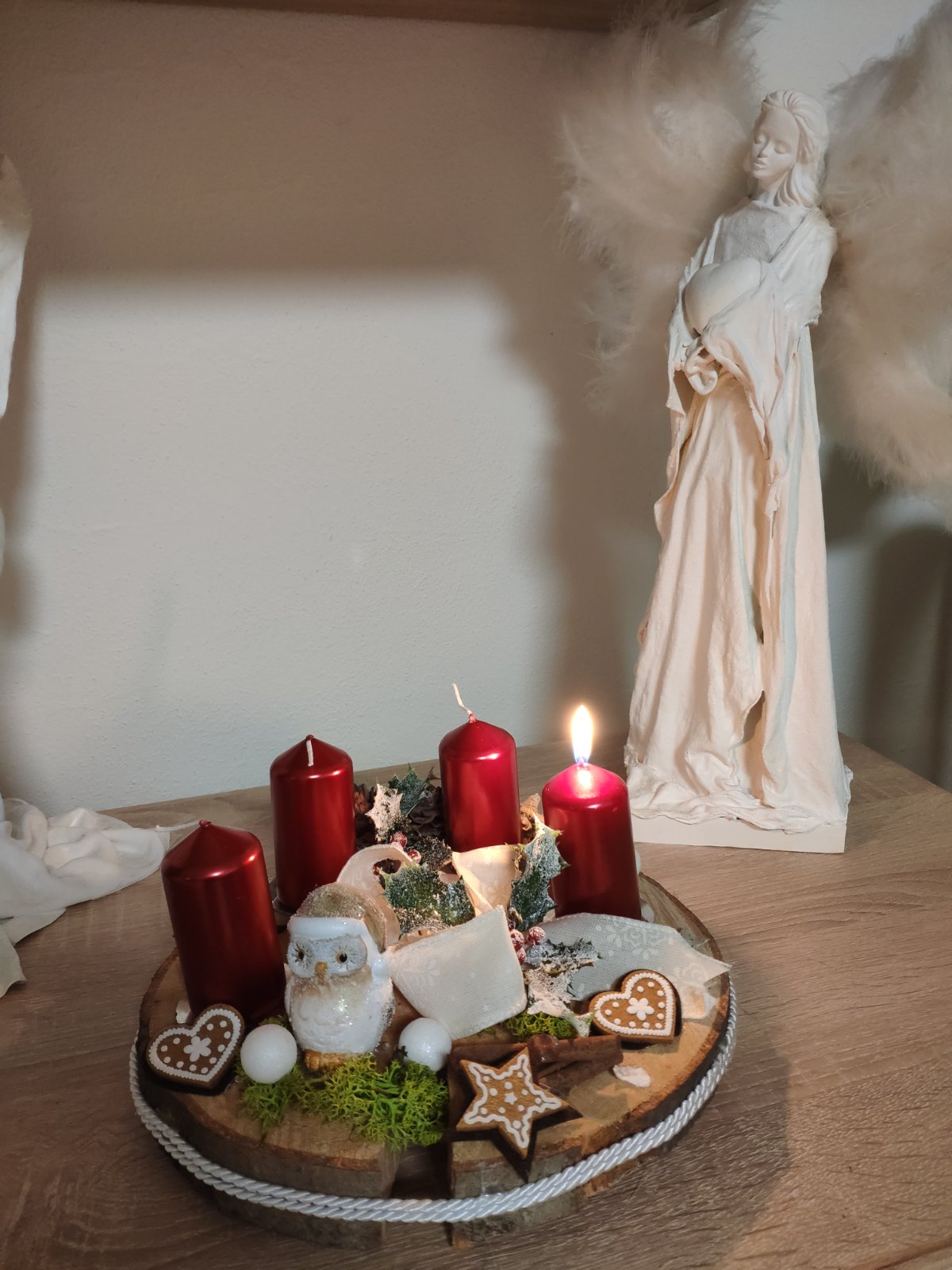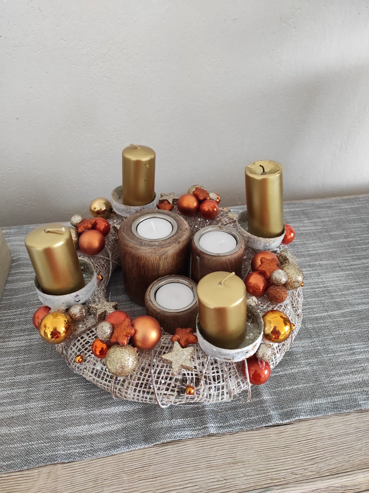 Mela jsem vždy věnec který se mohl použít další rok,bezúdržbový,ani svíčky se nezapalovali 🙈ale letos dcera chtěla zapalovat tak jsem včera koupila v kaufu v akci 😁a malinko jsme dozdobily a u večeře již zapalily