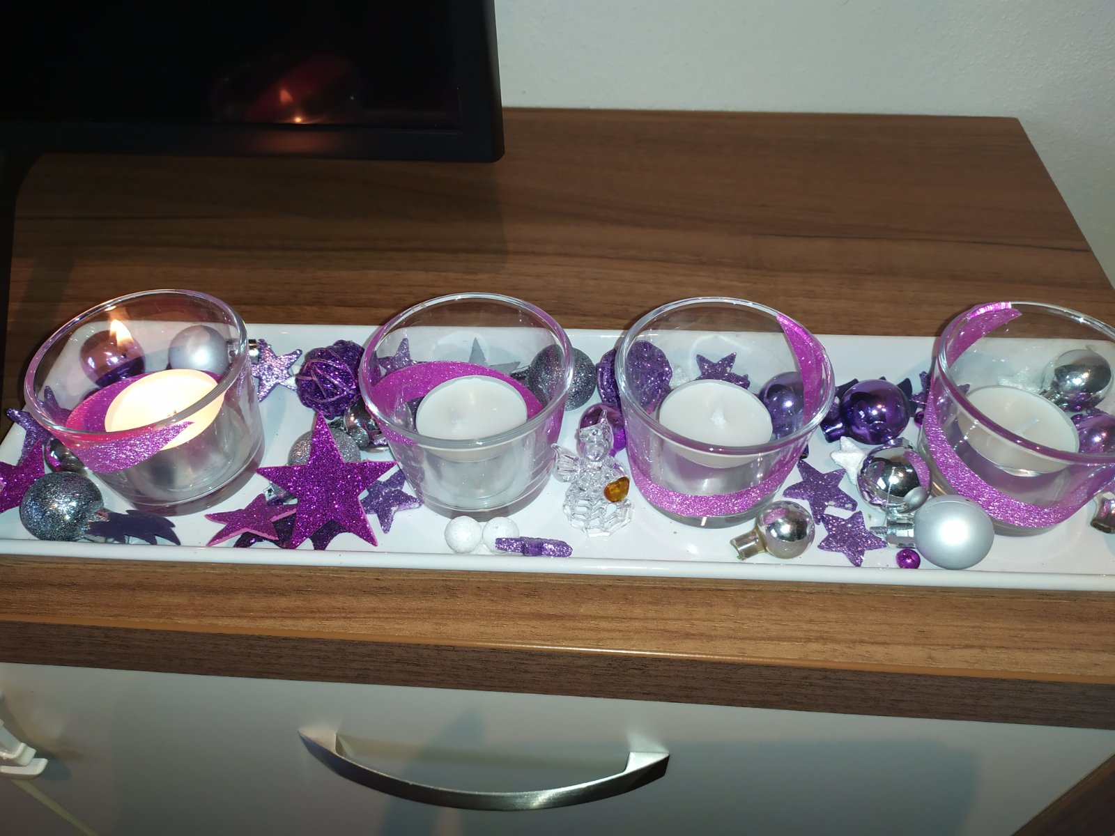 Máme krásný stříbrno-fialový svícen 🙂