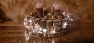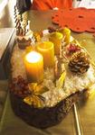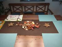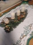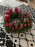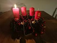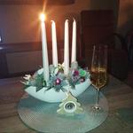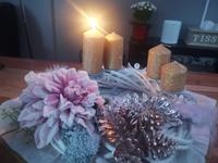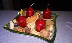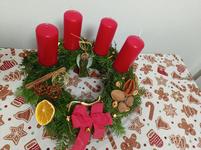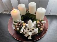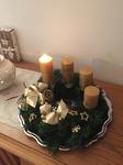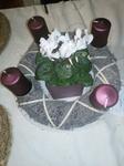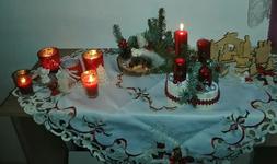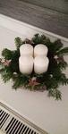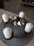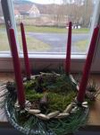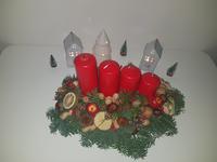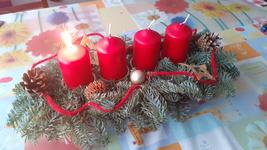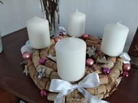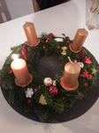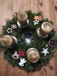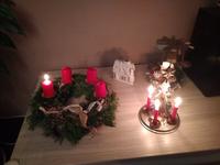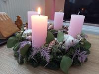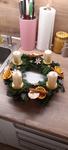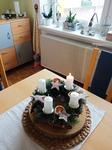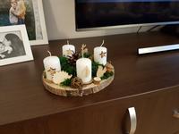 Máme věnec i svícen. Oba jsou hodně přírodní. Věnec je z větviček, šišek, ořechů a svícny máme dva první - podstavec dřevěný kruh, bílé svíčky, větvičky, šišky ořechy. Druhý ( je to již pár let) dělala dcera ve školce z keramiky to je moje srdcová záležitost. Momentálně ležím v posteli tak jen popis.
