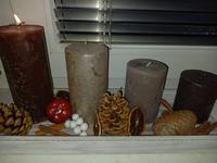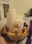 Máme dřevěný obdelník kde přidáme jen svíčky a přírodní ozdůbky 😇