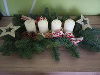 Klasicky zeleny kruhovy se svickama jsem tvorila s detma.Plus mame jeste hvezdu ze dreva,kde se zapaluji cajove svicky 🙂