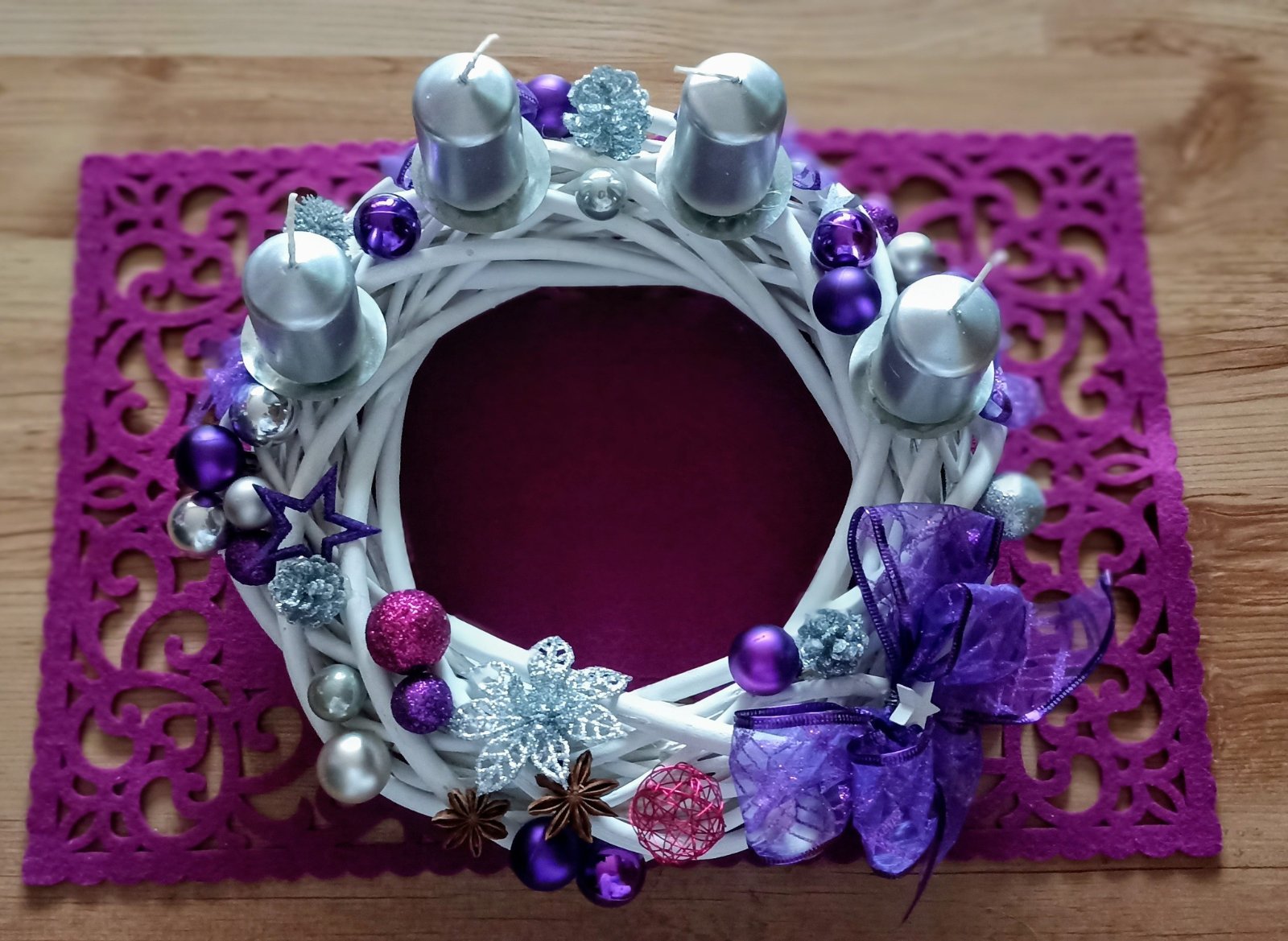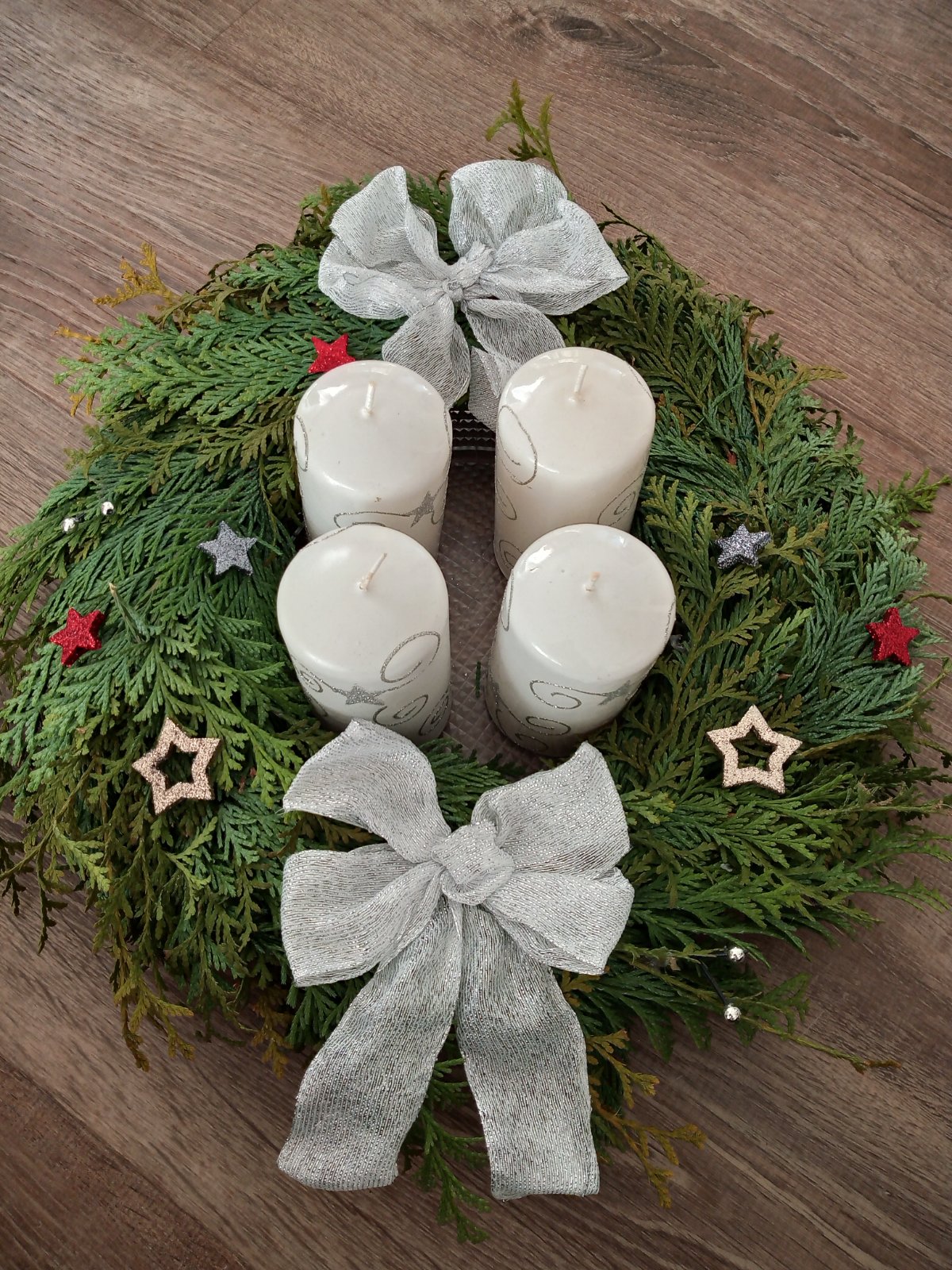 Adventní věnec á máme každý rok , letos stříbrný + bílá