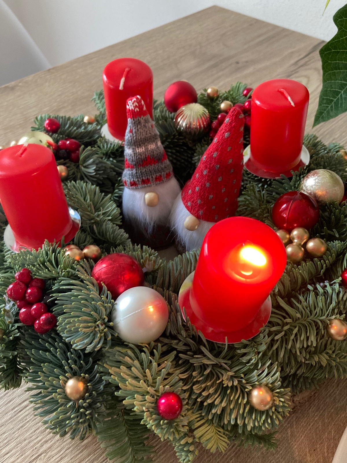 Ráda bych si adventní věnec vyrobila sama, ale nejsem na to sikovna ani trpělivá😁 každý rok tedy podpořím místního výrobce a pokaždé je dokonalý. Letos tradiční s červenými svíčkami 🎄