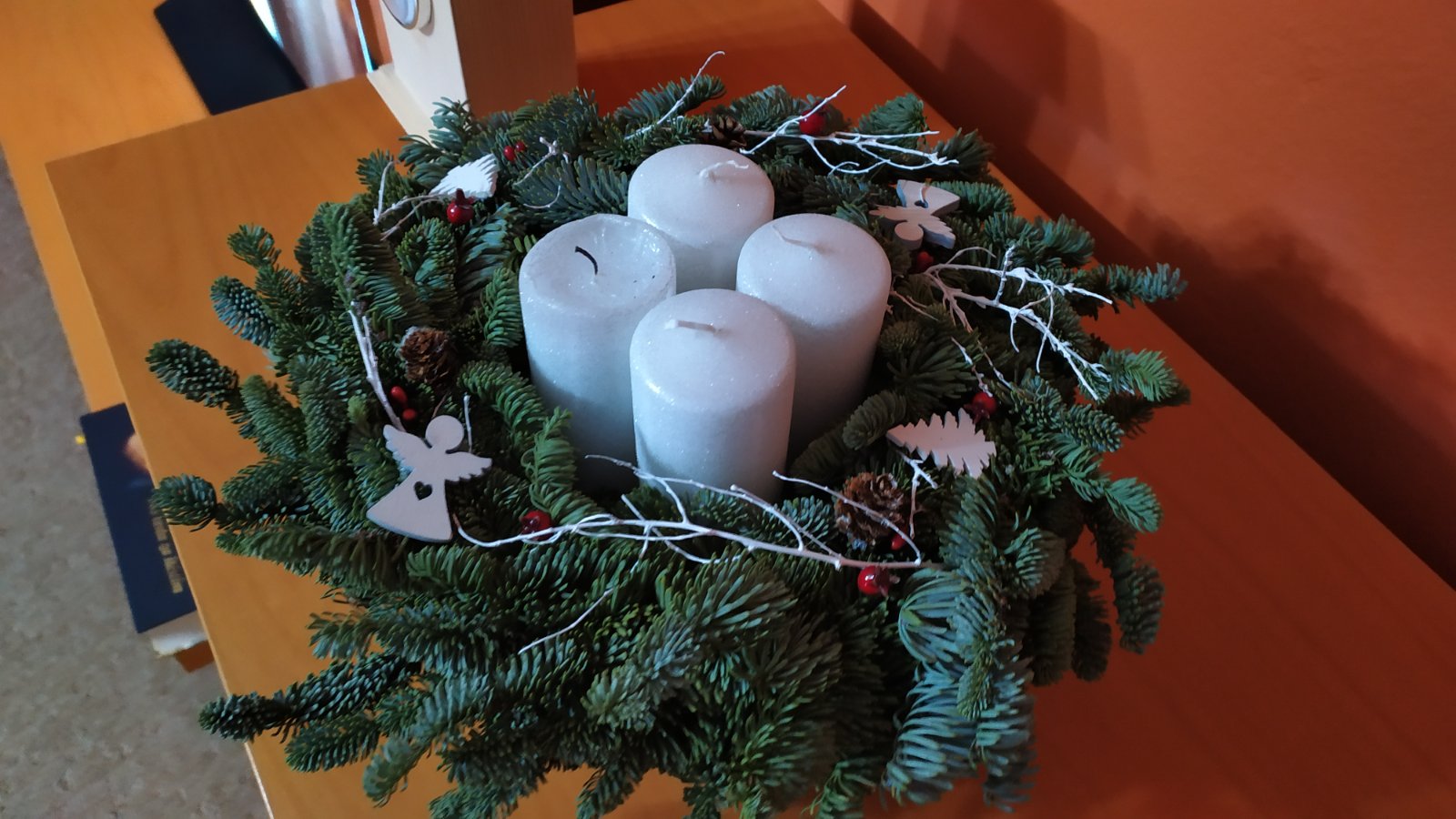 Adventní věnec nemám, mám jen vánoční věnec na dveře 😉
