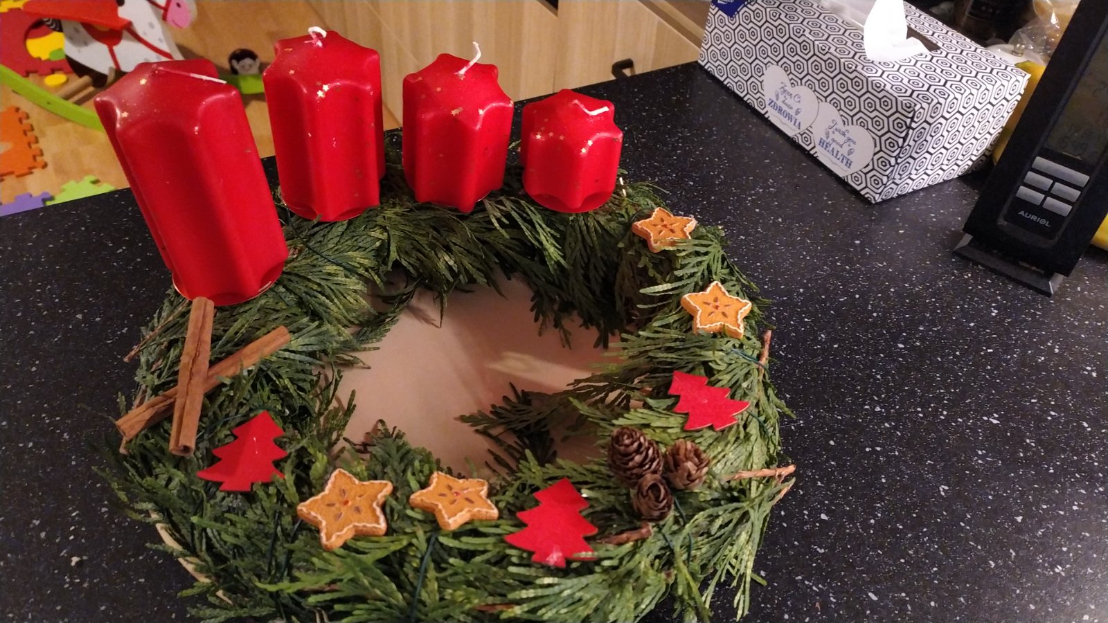 Adventni venec mame kazdy rok😉vzdy si koupim hotovy venecek a zbytek dodelavan sama. Letos poprve s dcerou😉