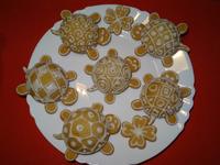 Každoročně se u nás připravují velikonoční perníčkové kraslice (3D) a velikonoční želvičky (také 3D). Děti si to zdůvodnily tak, že želvičky se rodí z vajíček a vajíčka jsou velikonoční, takže je to v pořádku :D. Vajíčka i želvičky jsou uvnitř plněné miniperníčky a u dětí doma i u v okolí se těší opravdu velké oblibě.