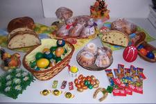 Mame velikonocni vyzdobu, barvime vajicka, cekame na koledniky, mame beranka a mazanec. Velky s malym maji pomlazku a slehaji v rodine.