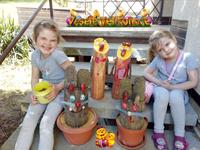 Výzdobu děláme vždy a letos ve velkém,protože se nudíme a baví nás tvořit . Máme papírová kuřátka v oknech a ze dřevěných špalků jsme si udělaly kuřátka a zajíčky,které nám zdobí zahrádku. Ještě barvíme vajíčka,děláme perníčky a upečeme si i beránka,ať se zabavíme. Holky na Velikonoce hledají schovaný balíček od zajíčka na zahradě,kde bude nějaký ten mls a omalovánky.Každoročně k nám chodí i kluci na mrskut,ale letos se bez nich budeme muset obejít.