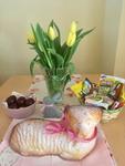 Velikonoční tradice moc nedodržuji, beru to spíše jako svátky jara. Ale letos jsem to s výzdobou fakt odflákla, nedostala jsem se ani ven, abych mohla dát do vázy nějaké čerstvé větvičky, ani vajíčka jsme nebarvili. Jen jsem upekla beránka, kterému přes noc upadla hlava... Naštěstí to nemělo vliv na chuť 🙂