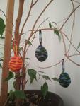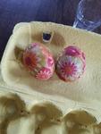 My v posledních letech jezdíme na velikonoce na vodu, protože ani na květnové svátky už moc vody nebývá, zato je už na řekách plno lidí. Cestou kluci(manžel se synem) nařežou proutky a upletou pomlázku. Letos už si ji syn upletl úplně sám. S dcerou barvíme vajíčka ve slupkach od cibule. Letos až po návratu domů v neděli večer, takže jsem na zdobení vymyslela rychlozlepšovák... olepit papírovou lepenkou.
