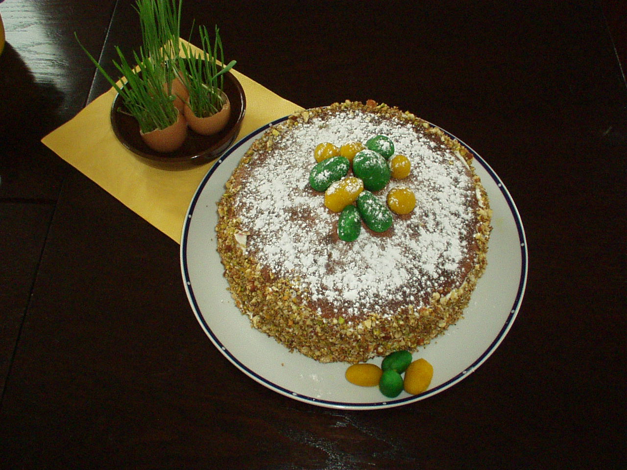 Barvím vajíčka, venku natrhám nějaké pěkné jarní kvítí, potom tulipánky do vázy. Napeču něco sladkého. Beránka nevedu :D většinou udělám šlehačkovou roládu s hromadou jahod. Nachystám ještě něco slaného a čekám na první příchozí. Jo a něco ostřejšího nesmí chybět 🙂) Jinak synovi jsou necelé dva roky a ještě je na tvoření malý, takže snad příští rok. Jinak fotka z loňska