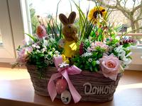 Do truhlíků už jsem zasadila žluté macešky a mezi ně přidala zápichy s vajíčky. Upeču perníkové zajíčky, beránky a kuřátka. Místo mazance budu péct velikonoční věnec, líp to vypadá a vím, že nikdy nepraskne. Pro děti upeču maličké beránky, aby měl každý svého. Uvařená bílá vajíčka zdobíme rozehřátou voskovkou. Ještě nesmí chybět řežábek, na ten se moc těšíme, s uzeným, vepřovým a spoustou kopřiv.
