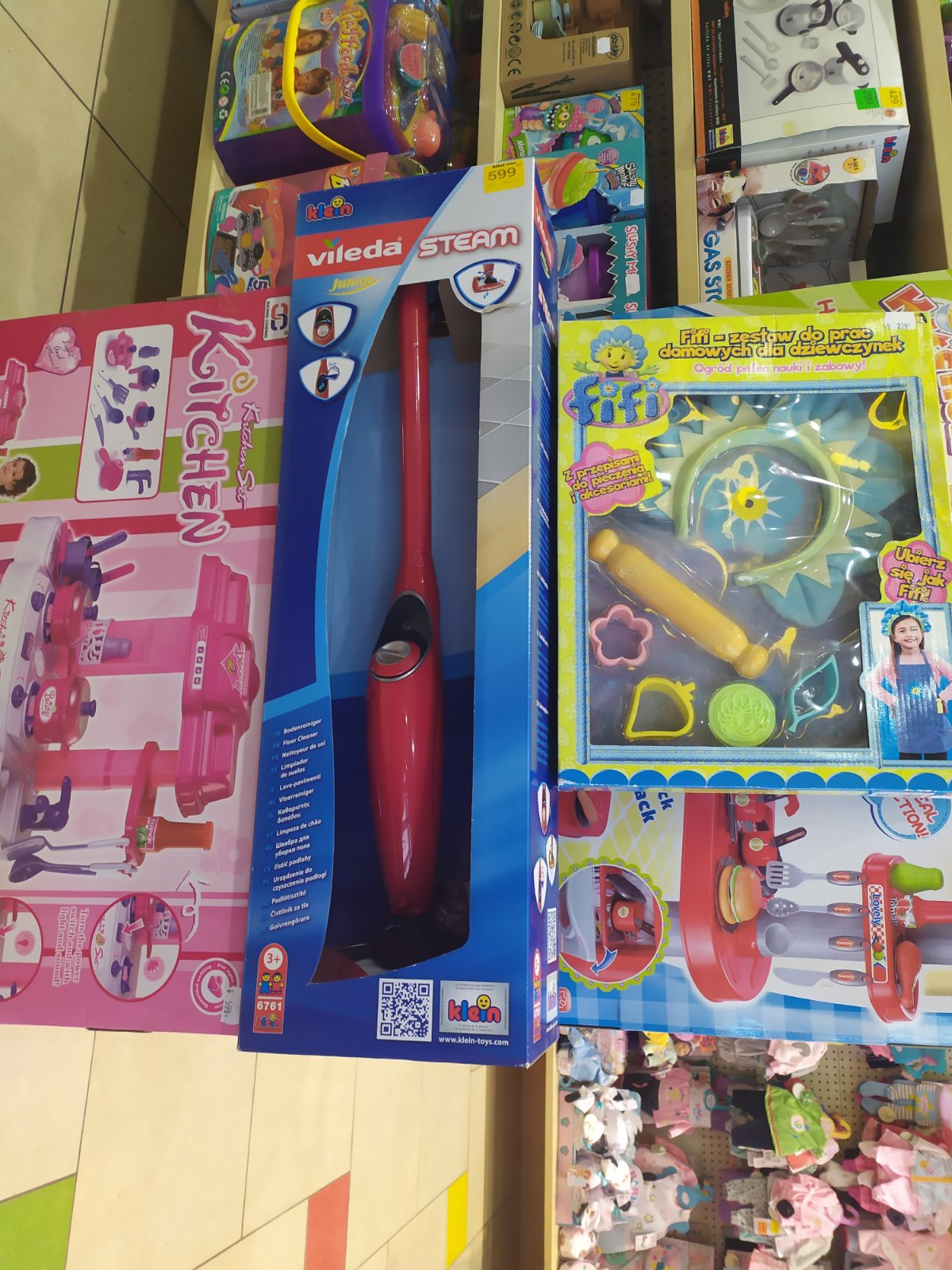 A co v Dračiku neměli? Dětský parní mop Klein Vileda a zrovna si ho kupovala nějaká holčička 🙂
