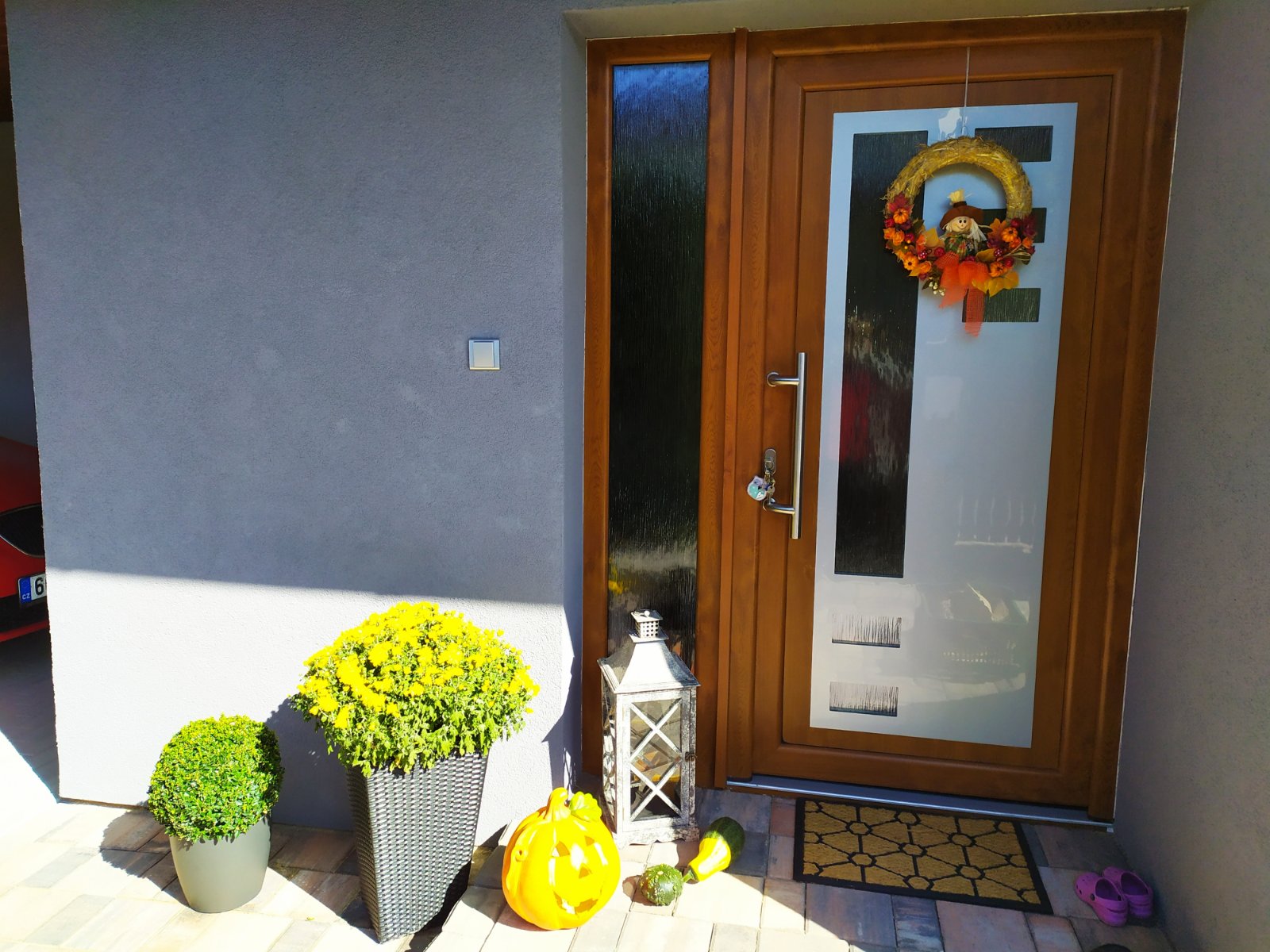 @78marcela Marcelko, tak jsem to vyfotila. Zatím to mám takto. Mám ještě dva ty velké květináče a dva buxusy, tak je naskládám vedle sebe. Přijít mi mají ještě kopretiny. A asi sem dopředu dám ty hortenzie. Nad dveřmi mám v plánu jeden závěs.