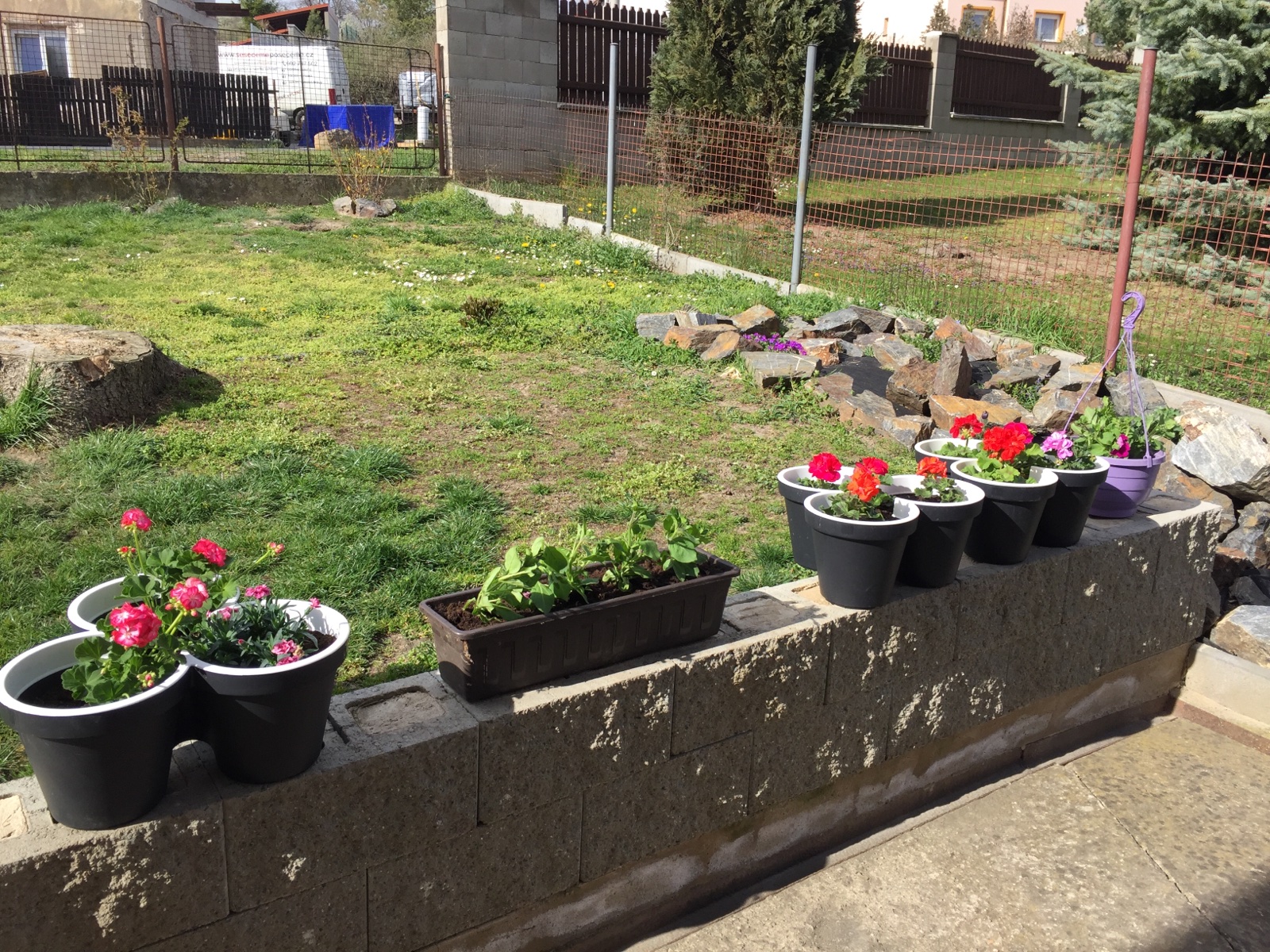Do budoucna tu tolik květináčů nebude, později to rozesadim do záhonů a ovozel přesunu za dům..jen se to tam ještě musí dodělat.