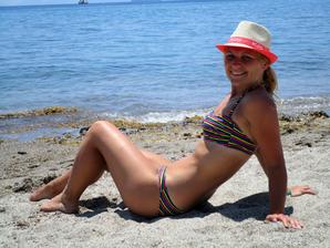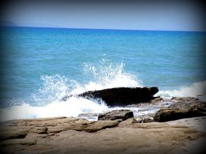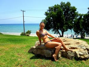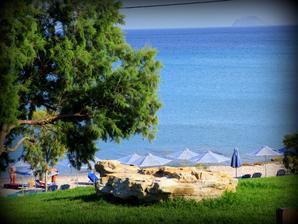 Pláž - k pláži opět vedlo asi 30schodů a pak byla silnice a za ní pláž. Hezká, písčitá s kamínky, jen u vstupu do moře kamínky a pak kamenná plata, což úplně super není, ale dalo se to 🙂 moře nádherně čisté, žádné řasy,nepořádek...