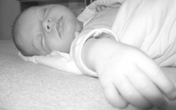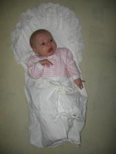 Doma jen spinkáme a papáme(na kojení budíme každé tři hodiny přes den, v noci spinkáme a budíme se tak 2x)
