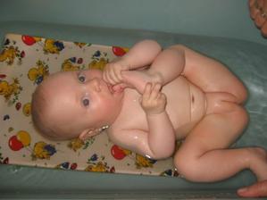 9.6. Lucinka objevila ručičky a pořád si je prohlíží a zuřivě cucá, kopeme nohama a plácáme ručkama ve vaně