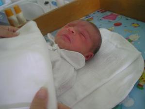 Odjela jsem tedy do porodnice asi po osmé hodině ráno, ještě v porodnici jsem měla tlak 145/95 a na monitoru se objevily nepravidelné kontrakce... Jinak nic... Stále otevřená na 1 cm. Vypadalo to, že snad budu propuštěna domů zpět s tím, že pokud se nic nerozběhne, tak se mám druhý den dostavit na kontrolu tlaku. Nicméně, naštěstí osud byl tak milostivý - už mě nikam nepustili a v 11.30 jsem byla převedena po všech krevních a testech a testech moči - na porodní sál...kde jsem strávila dlouhé hodiny až do 22 hodin, kdy jsem měla vše zdárně za sebou... Musím také na tomto místě moc poděkovat mému manželovi, který byl v této osudové životní chvíli při mně - byl mi tak silnou oporou, že si nedokážu představit, jak bych poslední fáze porodu - připojená na sposuty hadiček (infuze s antibiotiky, epidurál, výživa apod.) byla schopna přežít úplně o samotě bez jeho podpory...