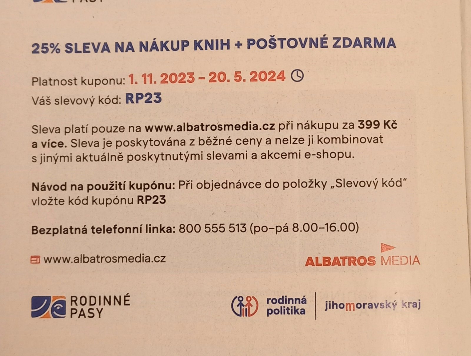 Ahoj, nemáte někdo slevu na Albatros media?Děkuji 🙂
