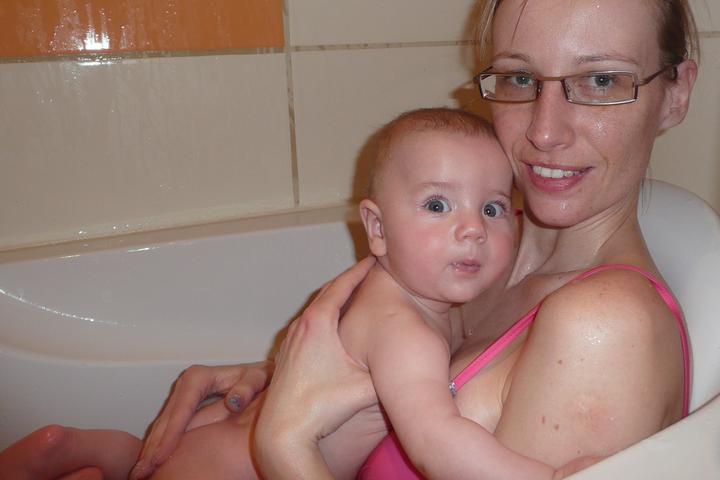 Tak dneska poprvé koupačka s mamkou ve velké vaně ... a pak 200ml mlíčka k večeři 😀
