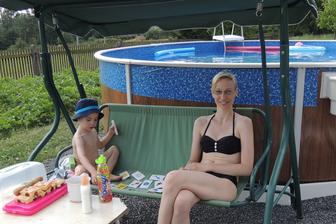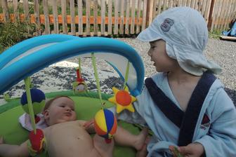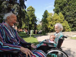 mezi 8:00 - 10:30 kojení a spinkání ... většinou 3/4 hodinky, na balkoně v kočárku