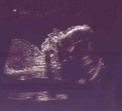 10.6.2010 velký UTZ v 32tt ... vše v pořádku, dle biometrie odpovídá 30+6, bohužel ultrazvuk trval jen asi 10 min., protože se mi udělalo zle z toho vedra a ležení na zádech, tak jsme museli prohlídku urychlit ... pan doktor nám potvrdil pohlaví - bude to chlapeček ... tentokrát jsem to viděla i já 🙂)) ... má 1659g, já navíc 9kg 🙂) ... je hlavičkou dolů, takže už se snad neobrátí 🙂)