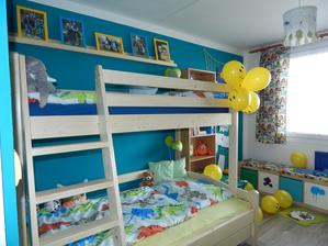 Plánovali jsme to půl roku, kluci byli u babičky na prázdninách a netušili, co se tady zatím předělává. Vše jako dárek k jejich 2. a 5. narozeninám. Do poslední chvíle se to podařilo ututlat a nakonec si rozbalili dárek za zalepenými dveřmi a sfoukli svíčky na dortu 🙂