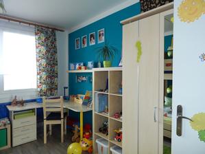 Moc děkuju, třeba někoho inspiruju 🙂. Nábytek není na míru, jen postel je od truhláře, zbytek Ikea, co už jsme měli nebo stůl a knihovna u postele z druhé ruky (dohromady za 700,-). Postel stála 8500,- od truhláře z Moravy, dělal mi i tu poličku na obrázky nad postelí za 300,- (podle Ikeácké poličky na obrázky). A přistýlka vyšla na 1800,-. Těší mě, že se líbí, my jsme nadšení 😀. A hlavně kluci unešení, to je hlavní! Jinak ta barva na zdi je ve skutečnosti tmavší 🙂