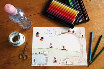 Pokud potřebujete někoho na chvíli zabavit, mohu tuto jednoduchou aktivitu jen doporučit! Stačí jen papír, pastelky, pár etiket z lahví Rajec, nůžky a oboustranné lepící štítky (případně lepidlo). 😉 Fantazii se meze nekladou!