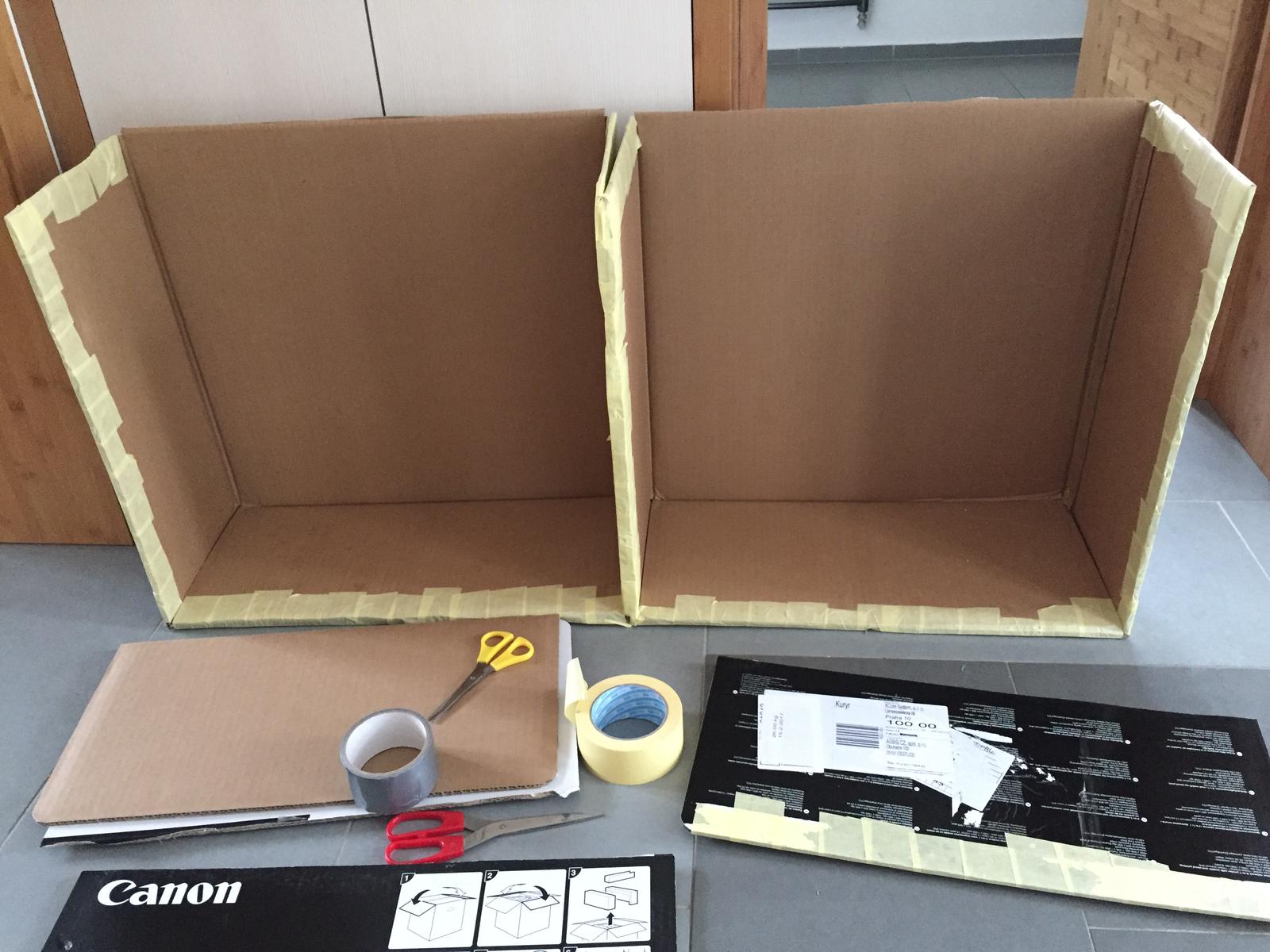 Pro zacatek rozdelit krabici na pul a zacistit hrany:-)