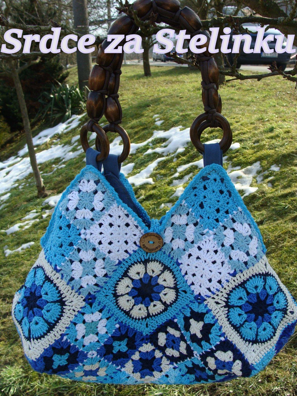 Taška modrá, ... háčkované čtverečky 100% bavlna , podšitá