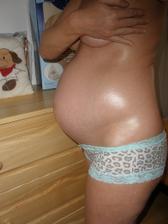 16.8.2010 - začínáme 30. tt, bříško tlačí nahoru, ale jinak krása, maličkej mi dělá boule a už ukazuje chodidýlka.. 🙂