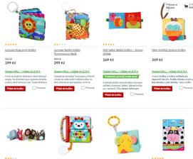 Hračky především interaktivní-edukativní-podporující psychický a fyzický vývoj a rozvoj (často značka Fisher Price, Lamaze)