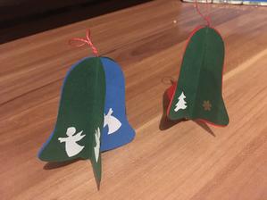 zvonečky - tvoření na vánočním jarmarku ve škole - zvonečky slepené dohromady a ozdobené tvary vyraženými razidly, děti dělaly samy dle instrukcí paní učitelky