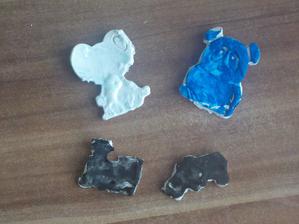 Vykrajování ze samotvrdnoucí hmoty - vykrajovali jsme už loni pro tatínka k svátku a pak jsem to odložila tvrdnout a teď po skoro roce jsme to při malování našli tak děti ještě pomalovaly.