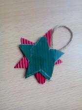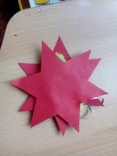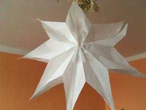 Hvězda z papírových sáčku - 8 papírových sáčku přilepeno k sobě (vespod a uprostřed sáčku, vystřižen tvar a pak přilepeny i 1. sáček k poslednímu