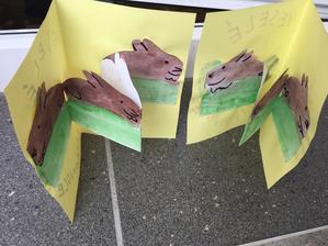 Zajíčci - měli jsme doma zajímavou šablonu tak jsem ji překreslila na výkres a vystřihla a děti vybarvily