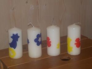Slepicky svicen - puvodne se mely namalovat dle vzoru, ale nechala jsem tvorit deti a jenom trosku potom dokreslila a nalepila svicky