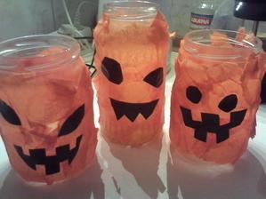 Podzimni lucernicky - sklenice od zavareniny, polepene krepovym papirem. Deti lepily samy, ale za mladsi starsi dodelal🙂 nalepeny oci a pusa