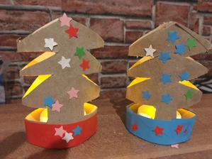 Dekorace stromeček - tvořeno z wc ruliček, nakreslili jsme na ruličku čáry podle kterých jsme vystříhali stromeček a nalepili jsme spodní část a hvězdičky, ty máme z razidla na papír co máme doma