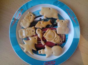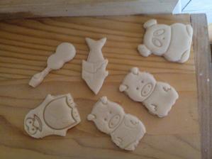 - vizovicke pecivo - 500 g hladke mouky a 200 ml vody, hnist min 30 minut, na noc v mikrotenovem sacku v lednici - vyvalela jsem plat a dala detem na desce, ony vybraly vykrajovatko a spolecnymi silami jsme vykrojili, hodinu nechat trochu vysusit, potrit vajickem, v troube nejdriv na 50 az je povrch leskly pridat teplotu na 120-150 nez bude povrch nahnedly