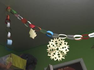 papírová vločka (tvořeno ve školce) - tu jsem dělala já, zatímco si děti hrály