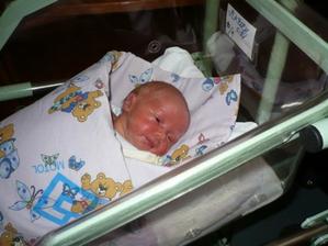 Ani toto těhotenství nebylo jednoduché přišlo příliš brzy po ZT ale jsem malej bojovníček a i přes to že nikdo nechtěl říct že to zvládnem jsme to dotáhly podle pánů doktoru do 38+0 ale podle jiných a spolehlivějších počtů 36+6.Bylo to 24.9. 2008 co jsem se po dlouhém a marném boji ( nátlak pana doktora) vyloupl na svět. Vážil jsem 3660g a měřil 49 cm. Pan doktor mě dostal ven až císařem, Tolik se mi u mamky líbilo. Ale zjistil jsem že na světě se mi líbí a krásně ho poznávám Poznávání mě baví jen neustále udivuju mamku s tatkou svou stálou leností. Ale mamka se raduje z každé maličkosti co se naučím a hlavně začnu používat. Tak už mi byl rok. Máma o mě povídá že mi koukaj kulišárny z oček to má pravdu zrovna minulí týden jsem jí udivoval tím jak jsem hodnej a když se podívala co dělám tak našla spoušt já jsem si pochutnával na krémíku na zadek sudocream. Mamku málem odvezly směr Bohnická léčebna tak jsem na sebe ještě vylil mlíčko. Ale tajemství krému jsem si nechal pro sebe. Nepovím kde jsem ho našel. Ale že bych se naučil chodit to néééééééé. Přeci musí mít mamka svaly jako Arnold né? A když si někdo vezme papání tak to je problém já chci taky. Zítra jdu na prohlídku tak jsem zvědavej jak jsem zase vyrostl