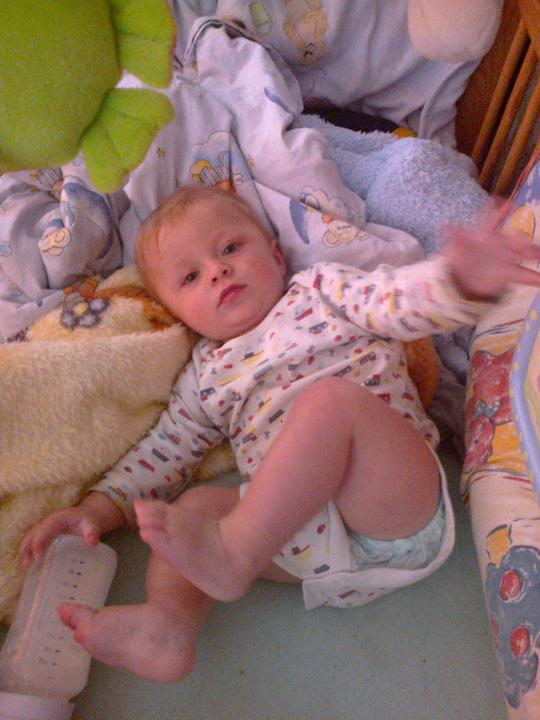 Dneska mě Honzík moc překvapil stoupl si u stolku a udělal dva krůčky je to bobíček.
